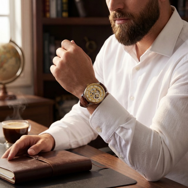 Inspirado na tradição da relojoaria europeia, foi criado para homens que valorizam estilo, presença e atenção aos detalhes.